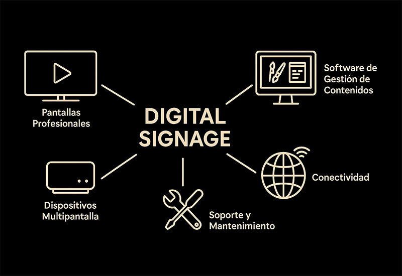 Digital Signage es un sistema de comunicación visual basado en pantallas digitales que permite transmitir información, anuncios, promociones y contenido multimedia en tiempo real. Gracias a su dinamismo y flexibilidad, reemplaza a los medios impresos tradicionales, ofreciendo una experiencia moderna y altamente efectiva para cautivar audiencias.